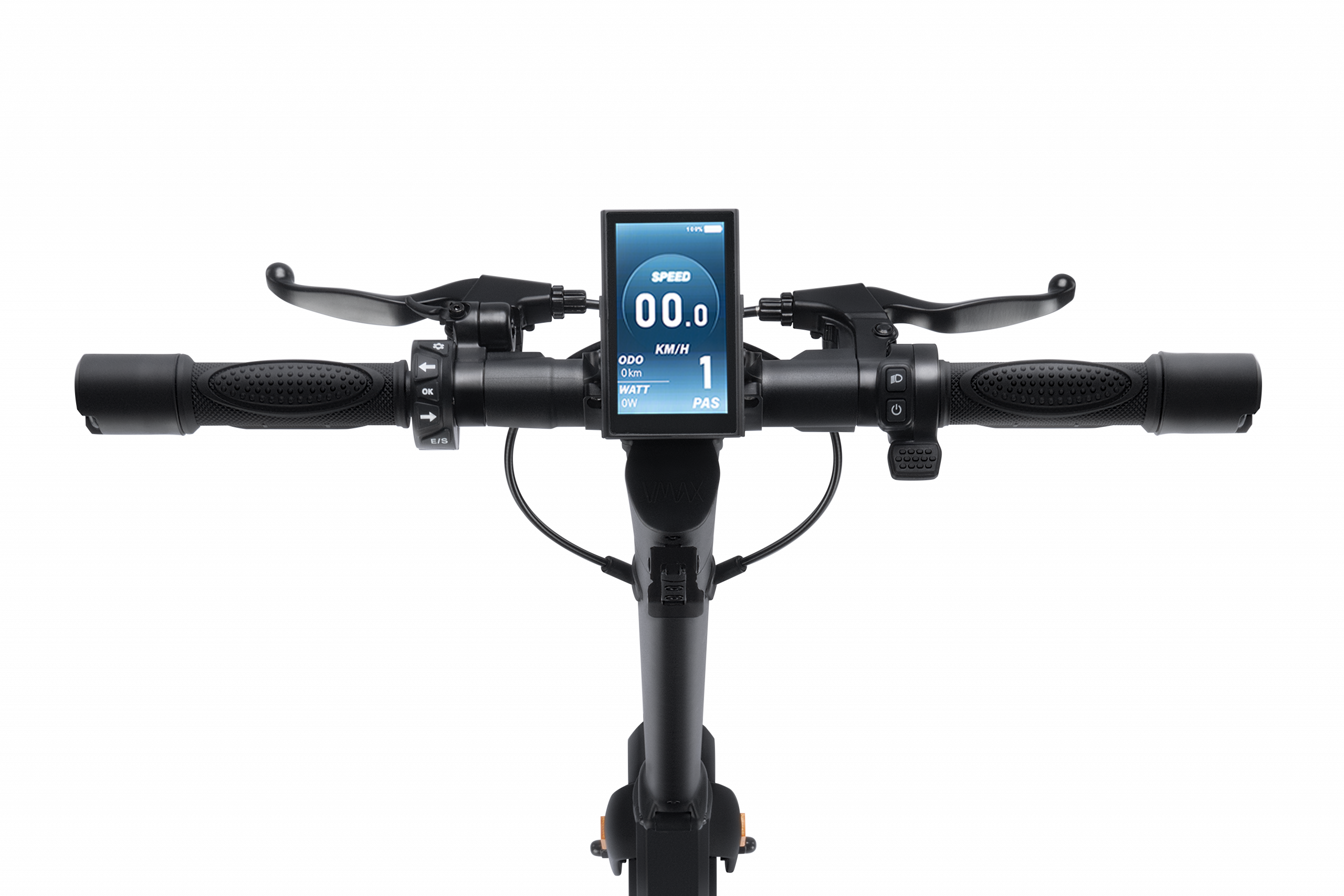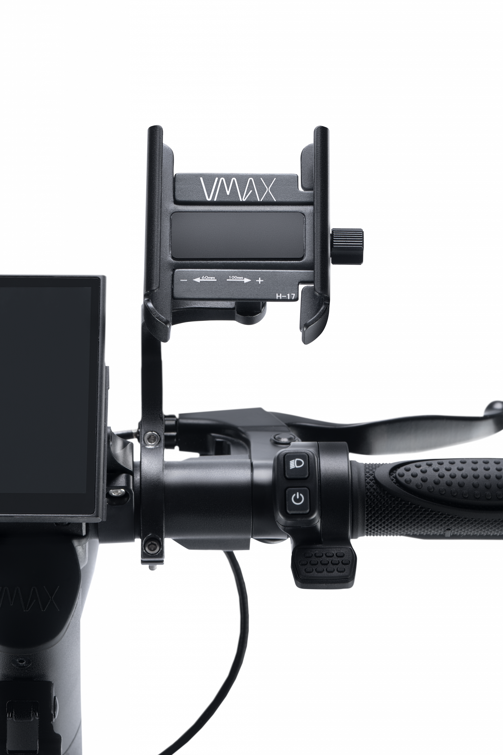 Das 4-Zoll TFT-Farbdisplay liefert umfassende Fahrinformationen und ermöglicht die Kopplung zur Brandneuen VMAX E-Scooter APP mit Turn-by-Turn Navigation, mehrsprachige Bedienung und die Möglichkeit die Strecke aufzuzeichnen.